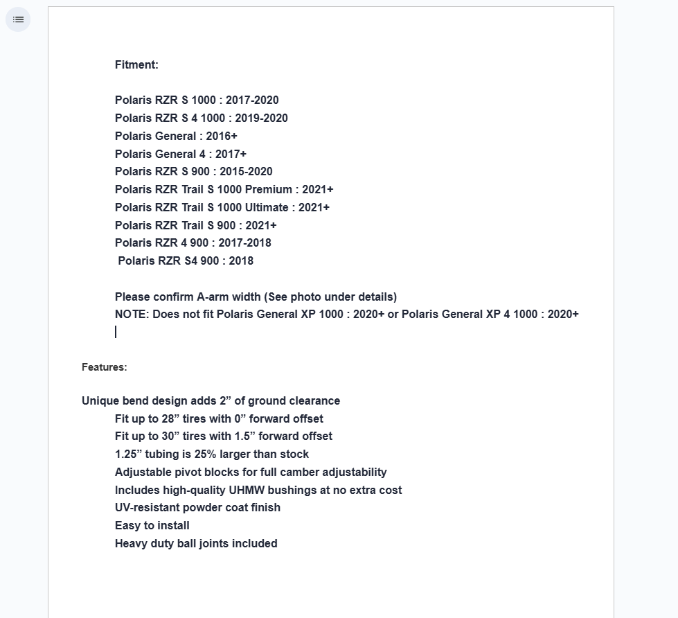 To develop the most dependable control arms imaginable, we started with 1.25” tubing, which is 25% larger than your stock arms. We utilize ultra-strong steel and then powder coat it to ensure long-lasting performance. The powder coat doesn’t just look good—it also protects your arms from rust and wear, so they’ll stay looking good for the long haul. And to make your life easier, we include nearly indestructible, virtually frictionless UHMW bushings with your purchase. These bushings are self-lubricating, meaning they get smoother the longer you ride.