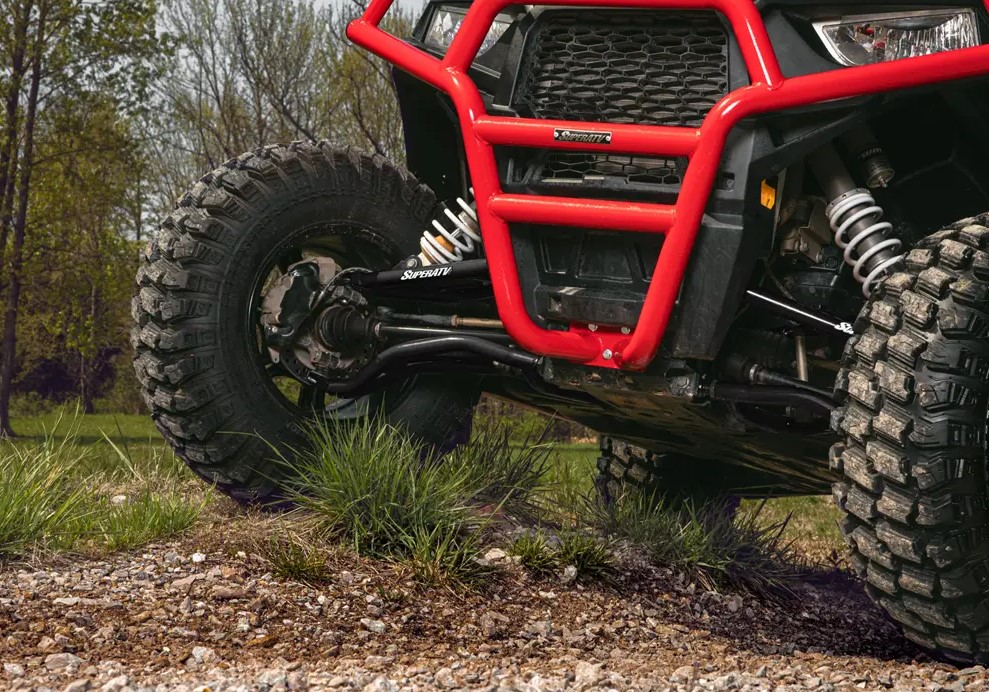 What would you do with a little extra ground clearance? Would you climb bigger rock walls, take on deeper mud bogs, or really let loose on your favorite rugged trail? With the 2” of extra clearance given by these arched A-arms, you won’t have to pick and choose. You’ll be able to do it all. And with the option of 0” or 1.5” forward offset, you can push your RZR even further. Going with the 1.5” offset makes your machine more stable and also gives you room to run larger tires.