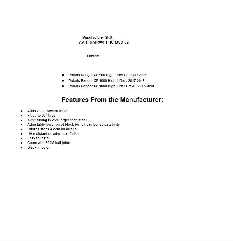 SuperATV 2″ Forward Offset Front A-Arms for Polaris Ranger XP 1000 HighLifter