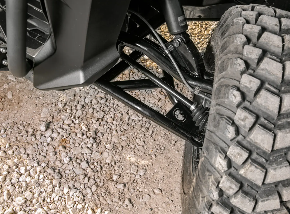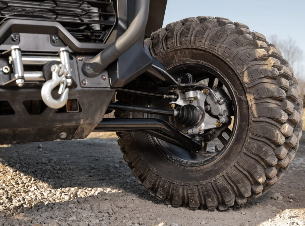 The design of these Can-Am Commander high-clearance A-arms gives you an additional 1.5″ of ground clearance, allowing you to ride over stumps and rocks you’d take a pass on before. Did we mention the 1.5″ forward offset? You’ve lengthened your wheelbase by moving the ball joint 1.5″ forward. The offset allows you to run up 31” tires without adding a lift kit. Can you imagine the fun you’ll have with extra ground clearance, bigger tires, and a longer wheelbase?