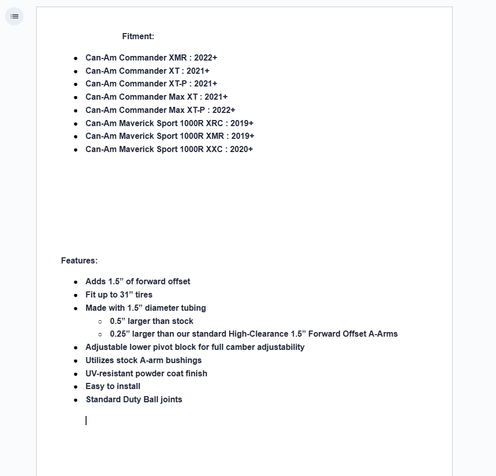 These Atlas Pro A-arms are the biggest and toughest we’ve ever built. With massive 1.5-inch diameter tubing—half an inch bigger than stock—they deliver unmatched strength and a bold, trail-ready look. They’re even beefier than our standard offset A-arms and finished with a UV-resistant powder coat for maximum durability and corrosion resistance. If you want the best for your Can-Am Commander, this is it.