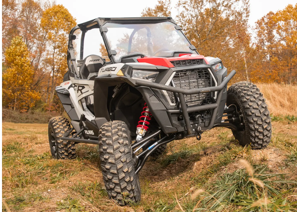 We’ve designed these Polaris RZR XP high-clearance A-arms to give you an additional 1.5″ of ground clearance. This allows you to tackle larger rocks and fallen branches that you’ve avoided before. And for more stability, we’ve lengthened your wheelbase 1.5″ forward giving you a 1.5″ offset—allowing you to run 34″ tires on your machine without adding a lift kit. If you thought your RZR XP was a hoss before, think again. These A-arms make your RZR look like a monster.