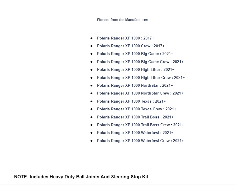 | Polaris | Ranger XP 1000 | -- | 2017 | |