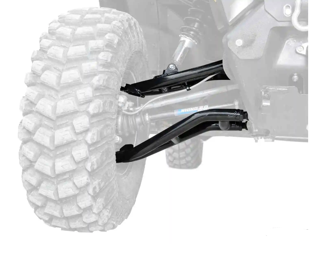 Your Defender is one heck of a machine, but is it prepared for battle against the roughest terrain? Upgrade your suspension by adding SuperATV’s Can-Am Defender HD10 Atlas Pro 2” Forward Offset A-Arms to your side-by-side. Atlas Pro tubing is bigger and stronger. At 1.5″ in diameter, it’s 0.5″ larger than your OEM A-arms. And the offset makes room for 32” tires.