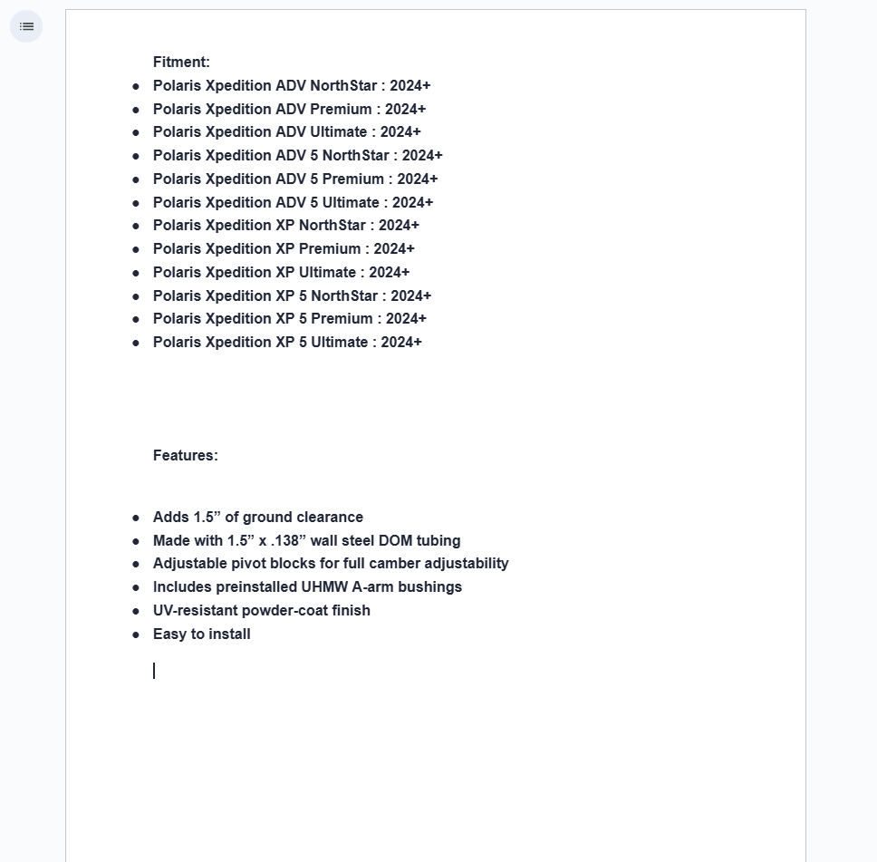 Your Xpedition is the ultimate overlanding machine. But when you load it up with gear and take on challenging terrain, you need all the strength you can get. Upgrade to SuperATV’s Polaris Xpedition Atlas Pro Rear A-Arms to make sure you’re always prepared. They deliver extreme strength, adjustable camber, and high-clearance bends. Atlas Pro has the strength and performance your Xpedition needs.