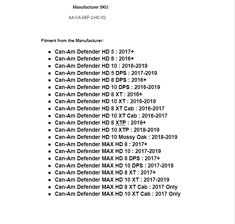 - Can-Am Defender MAX HD 10 XT Cab : 2017 Only