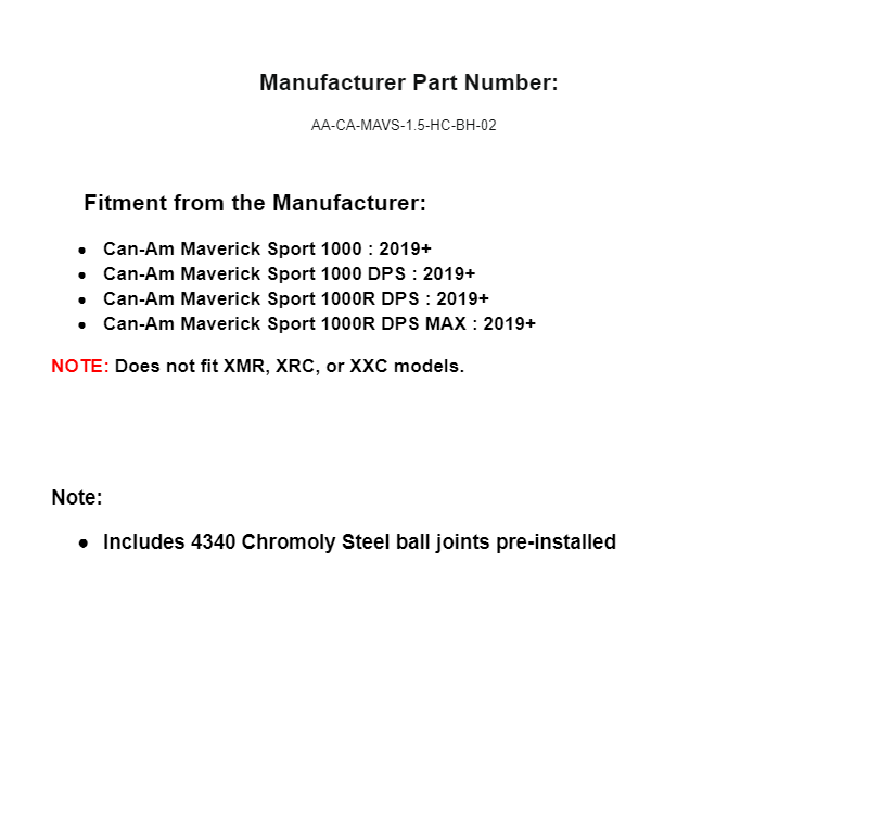- Come with Heavy Duty 4340 Chromoly steel ball joints – ball joints may vary from design shown in images.