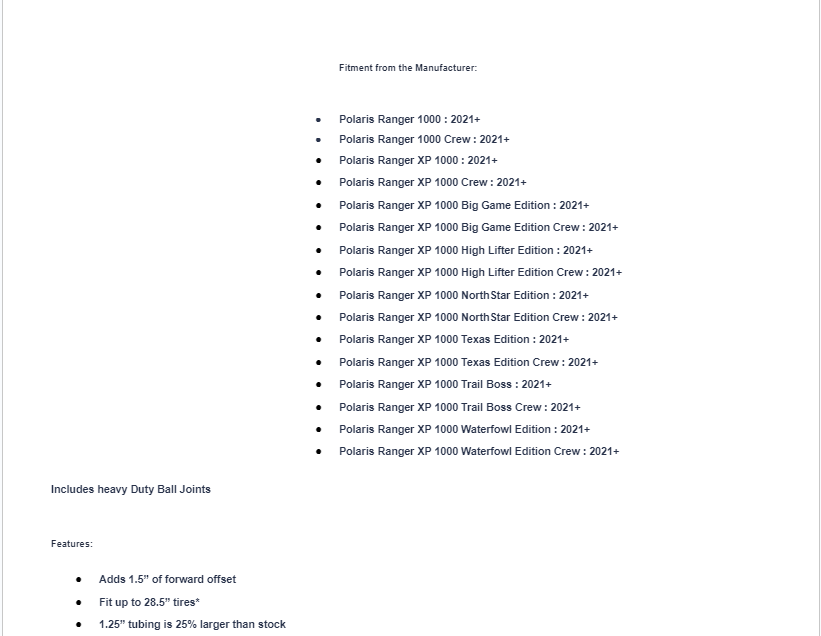 Your Ranger is rugged and it’s built for the off-road. If you want it to truly handle everything you encounter, you need to upgrade to SuperATV’s High-Clearance 1.5” Forward Offset A-Arms for the Polaris Ranger XP 1000. They’re stronger, come with full camber adjustment, and increase your wheelbase by 1.5 inches for more stability and room for up to 28.5” tires. It’s a win-win.