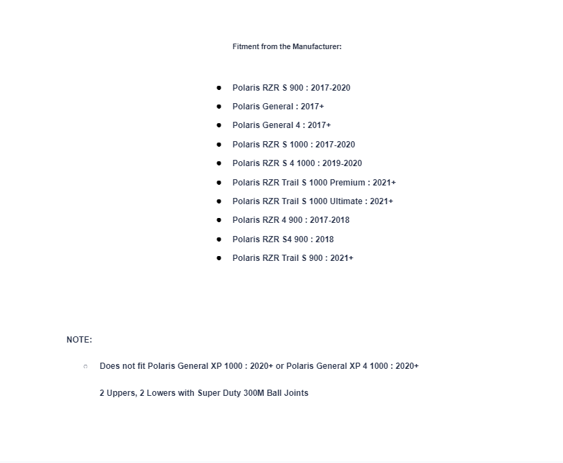 Does not fit Polaris General XP 1000 : 2020+ or Polaris General XP 4 1000 : 2020+