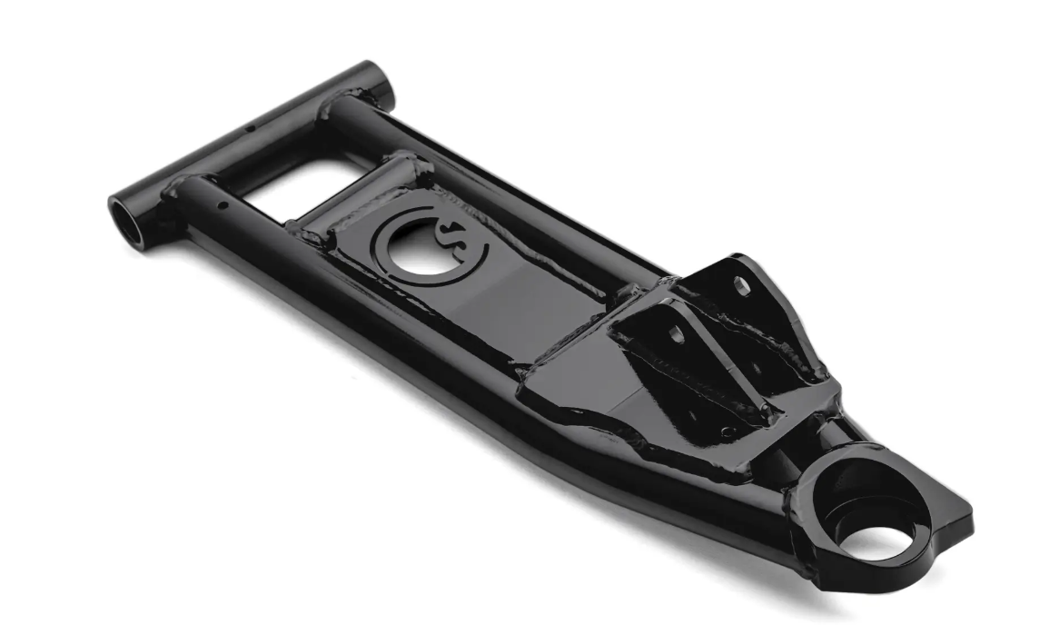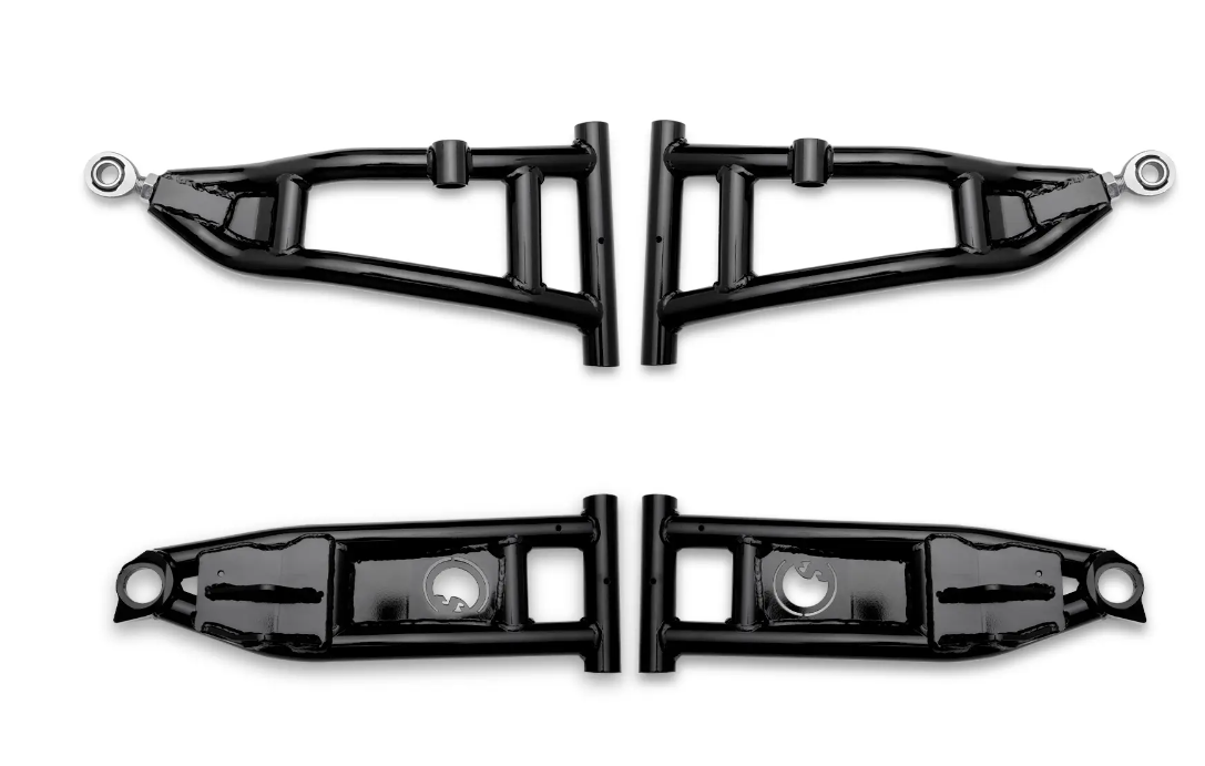 No matter where you ride, a little extra ground clearance is never a bad thing. By putting more space between your undercarriage and the ground, you’re less likely to get hung up on rocks and roots. That’s why we make these A-arms with a bend in the middle—it gives you an additional 1.5” of clearance. Our arms also have a 1.5” offset. Adding that length to your wheelbase ensures more stability and gives you room to run up to 34” tires. The high-clearance bend paired with a forward offset results in a smoother and more balanced ride.