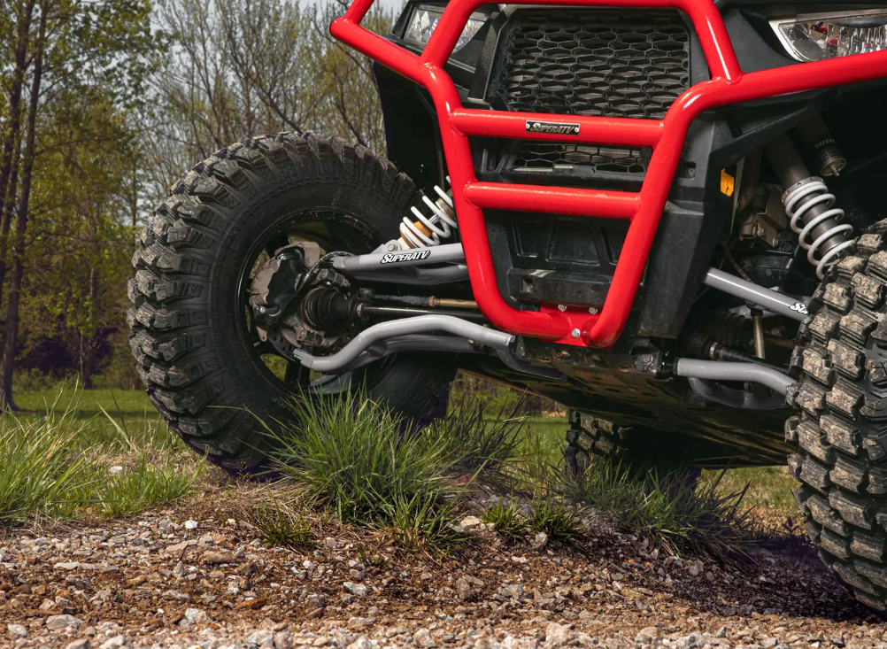 What would you do with a little extra ground clearance? Would you climb bigger rock walls, take on deeper mud bogs, or really let loose on your favorite rugged trail? With the 2” of extra clearance given by these arched A-arms, you won’t have to pick and choose. You’ll be able to do it all. And with 1.5” of forward offset, you can push your RZR even further with 30” tires.