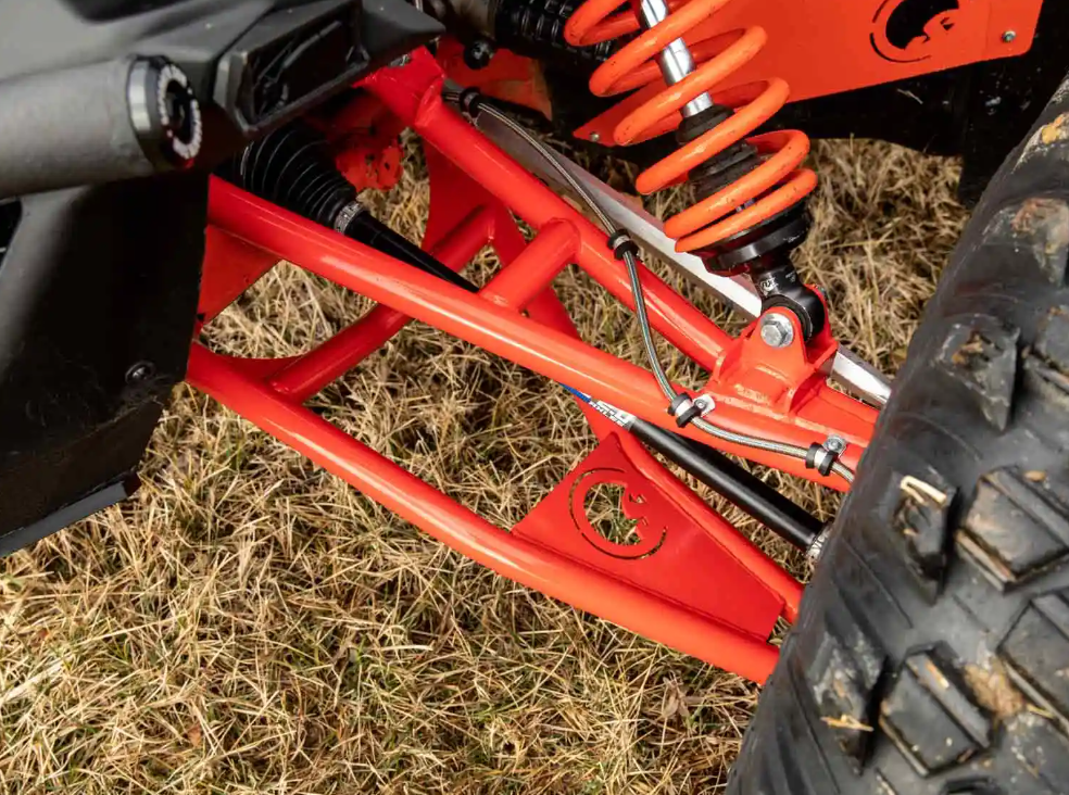 The X3 is a hardcore machine straight from the factory. So what’s better than a dealer-fresh X3? One with monster tires! Transform your UTV from trail pup to top dog with SuperATV’s Can-Am Maverick X3 High-Clearance 2″ Forward Offset A-Arms. These A-arms add 1.5” of ground clearance to boost your rig over logs and rocks. Plus, they give you space for bigger tires. They bring strength, style, and quality to make your Maverick unstoppable.