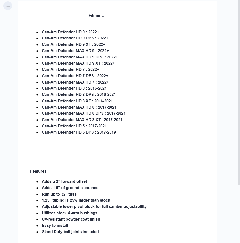 Are you ready to take on rougher, meaner terrain? Then it’s time to upgrade to SuperATV’s High Clearance 2″ Forward Offset A-Arms for the Can-Am Defender HD9. They’re super tough, increase your wheelbase, and give you room for up to 32” tires. Plus camber is fully adjustable. These A-arms are exactly what you need to transform your Defender into a trail eater.