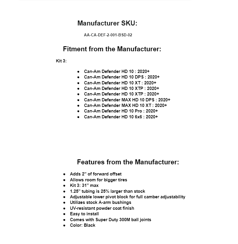 SuperATV High Clearance 2″ Offset A-Arms for Can-Am Defender HD 10 Kit 3