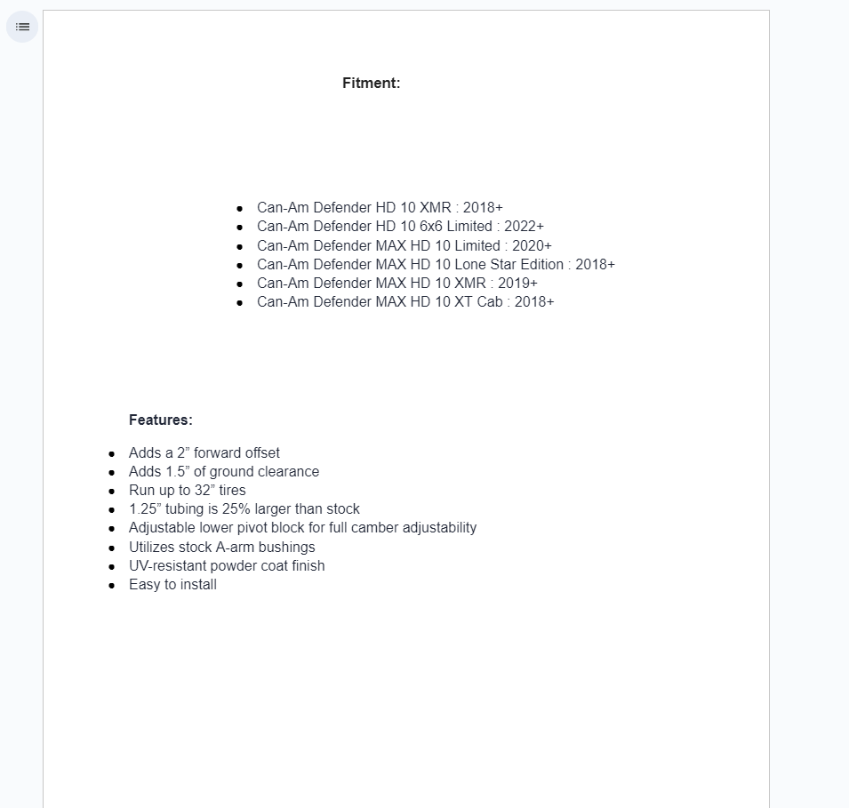 Your Defender is rugged and it’s built for the off-road. If you want it to truly handle everything you encounter, you need to upgrade to SuperATV’s High-Clearance 1.5” Forward Offset A-Arms for the Can-Am Defender. They’re stronger, come with full camber adjustment, and increase your wheelbase by 2 inches for more stability and room for up to 32” tires. It’s a win-win.