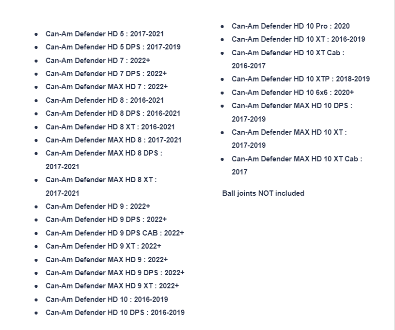 - Can-Am Defender HD 10 XT Cab : 2016-2017