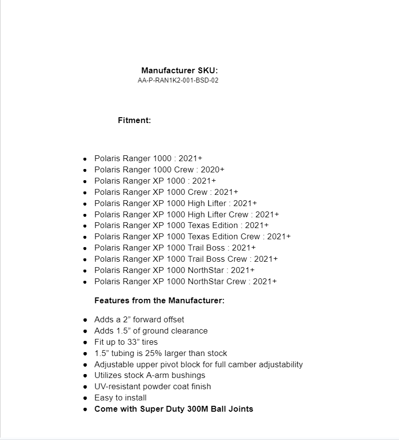 We made our Polaris Ranger forward A-arms for those who want more. The 1.25” diameter tubing we use is 25% larger than stock. They’re even powder coated to keep their great look. They have a tubed design, so they blend right in with your machine.