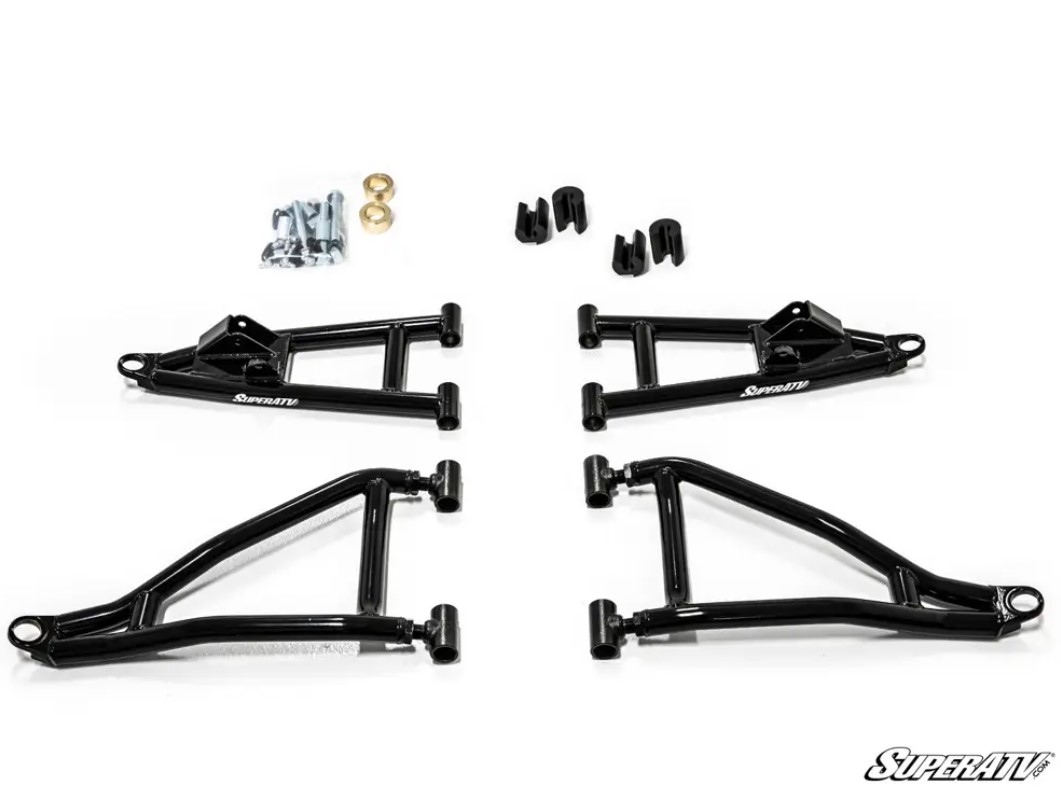Time to roll out the big guns, and by big guns we mean big, beefy High-Clearance 2” Forward A-Arms that give you room for monster tires. Put these SuperATV A-Arms on your Polaris Ranger XP 1000 and you’ll have clearance for up to 33” tires without adding a lift kit. That leads to a lot more people asking for a ride on your party wagon. Your passengers will love the increased stability the 2” offset provides. Plus, the larger-than-OEM tubing means stronger A-arms.