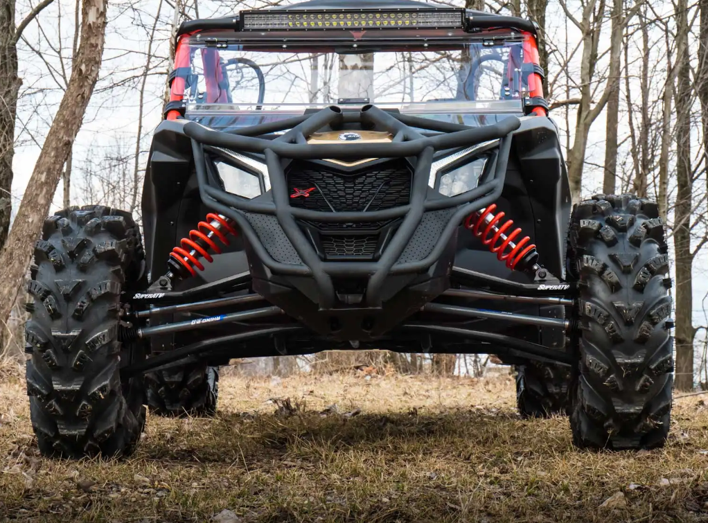 What’s worse than hitting a tough section of the trail and seeing the wheel that used to be attached to your UTV rolling ahead of you? Seeing the wheel that used to be attached to your UTV rolling ahead of you miles from home. You need SuperATV’s Can-Am Maverick X3 High-Clearance A-Arms. Our bend design gives you more ground clearance without having to install a lift kit. These control arms let you adjust camber as needed so you’ll always be ready for anything. We use bigger tubing than OEM as well, so you can see the strength.