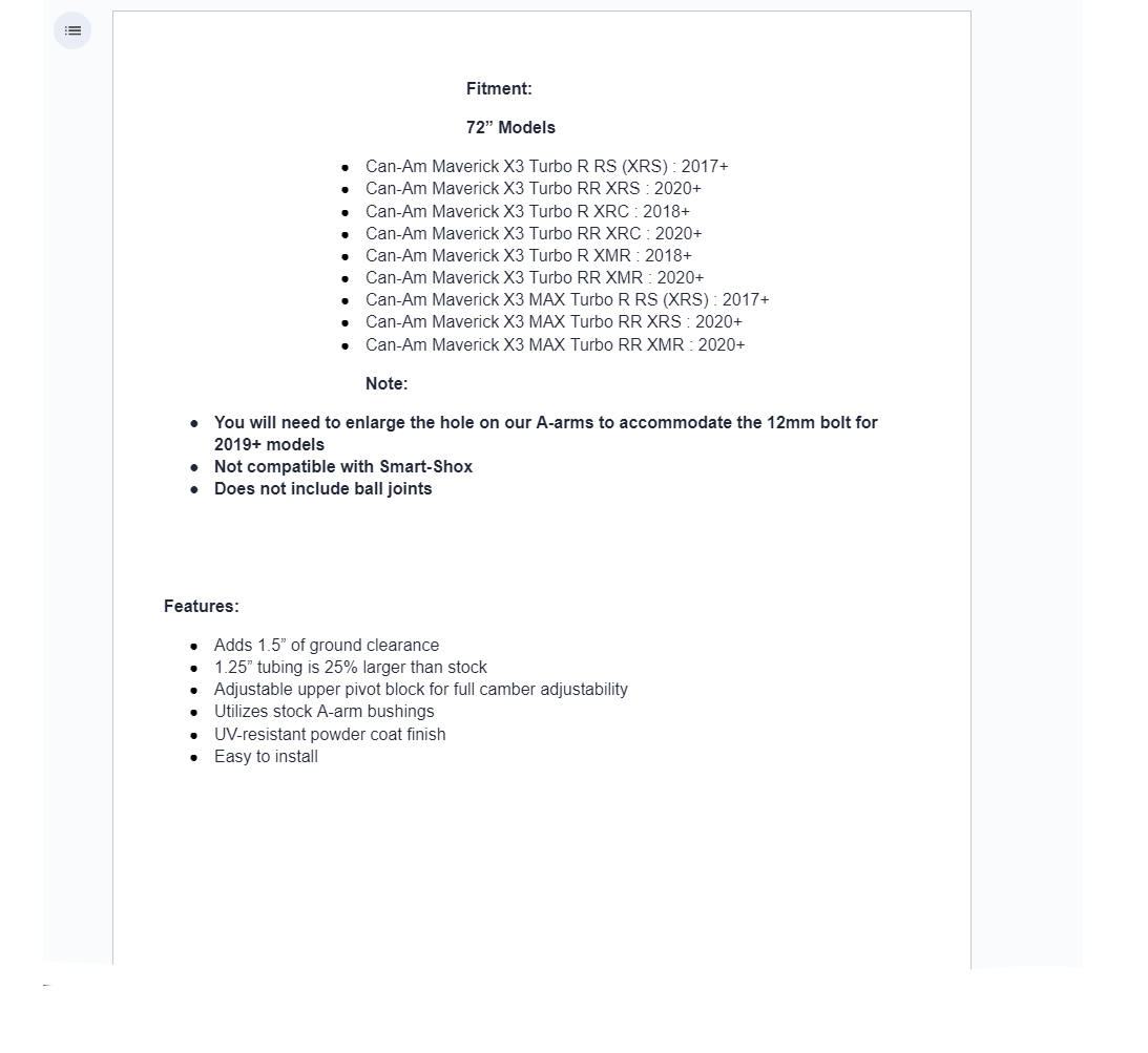 - You will need to enlarge the hole on our A-arms to accommodate the 12mm bolt for 2019+ models