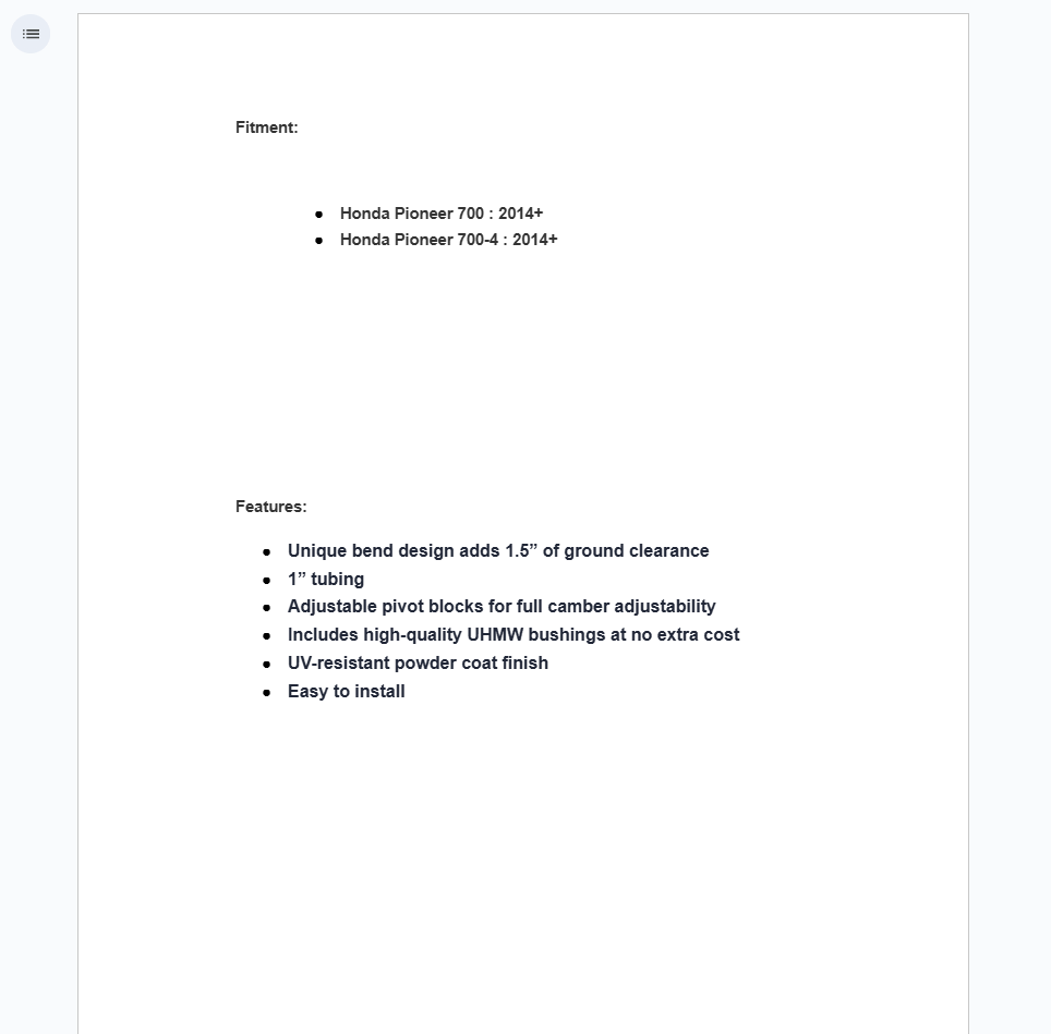 We make these A-arms tough with 1” diameter tubing and a UV-resistant powder coating. Their durable enough to take huge hits on nasty trails. They make your machine look as tough as it is. We also include UHMW bushings for free, and they’re preinstalled! These self-lubricating bushings are nearly indestructible and virtually frictionless, so you can stay riding for longer. You’ll save time, money, and hassle.