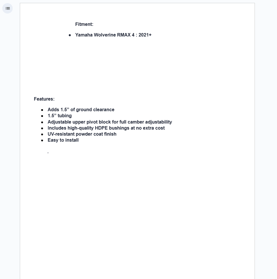 Riding wild on the trails is all fun and games until your stock A-arms get snagged on a stump. After that, you’re left limping home. Get SuperATV’s Yamaha Wolverine RMAX 1000 High-Clearance A-Arms for stronger lower A-arms that will last. We give you lowers only because they’re the ones that take the heat while you ride, and we don’t want to sell you anything you don’t need. They’re made from 1.5” diameter tubing for toughness that won’t quit. You get 1.5” of extra ground clearance because of the bend design, which lets you cruise over stumps and rocks. Plus, with our adjustable pivot blocks, you can easily set your camber.