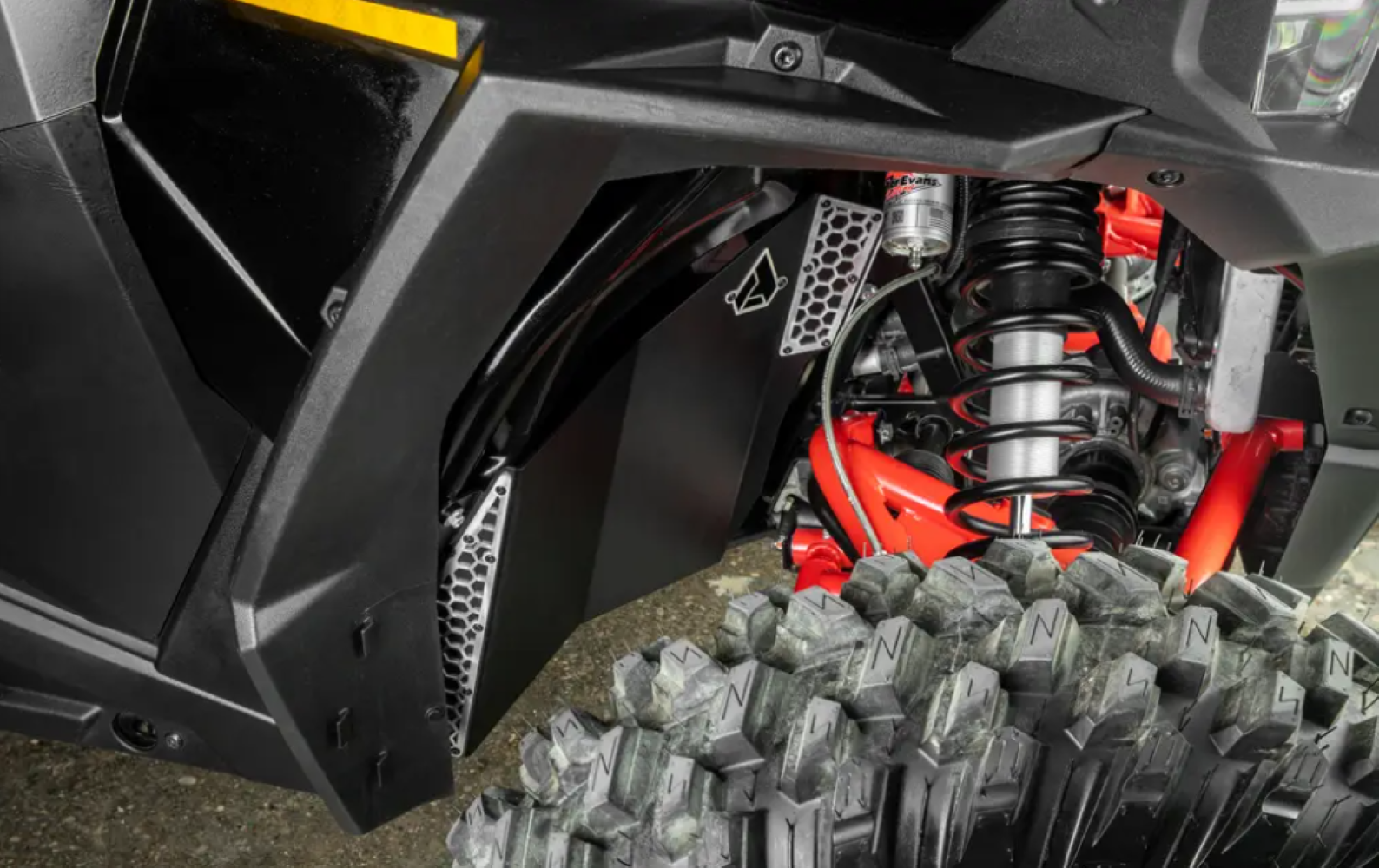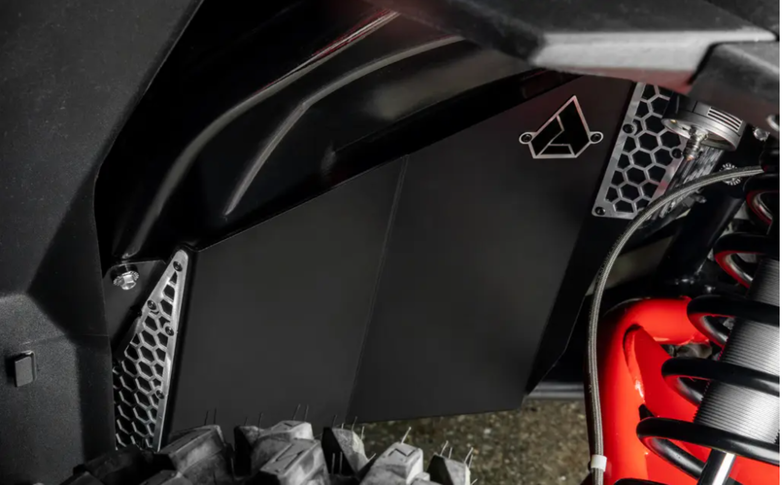 Let’s face it, your wheel well is a weak spot just waiting to be attacked. That’s where Assault’s fender guards come in—they’re 5 times stronger than the firewall alone, seriously beefing up your defenses. These bad boys mount onto your RZR’s frame to keep rocks and branches from shooting into the cab. Plus, they’ve got hex-shaped cutouts to make cleaning out mud and dirt a breeze. Plus they’re powder coated for maximum toughness. These fender well protectors won’t let you down. Even when things get intense out on the battlefield, you’ll be safe from enemy infiltration.