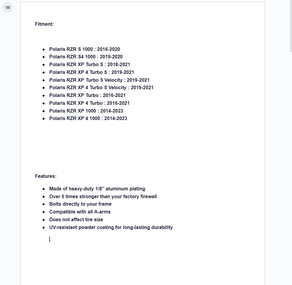 | Polaris | RZR XP 1000 | Ultimate | 2023 | |