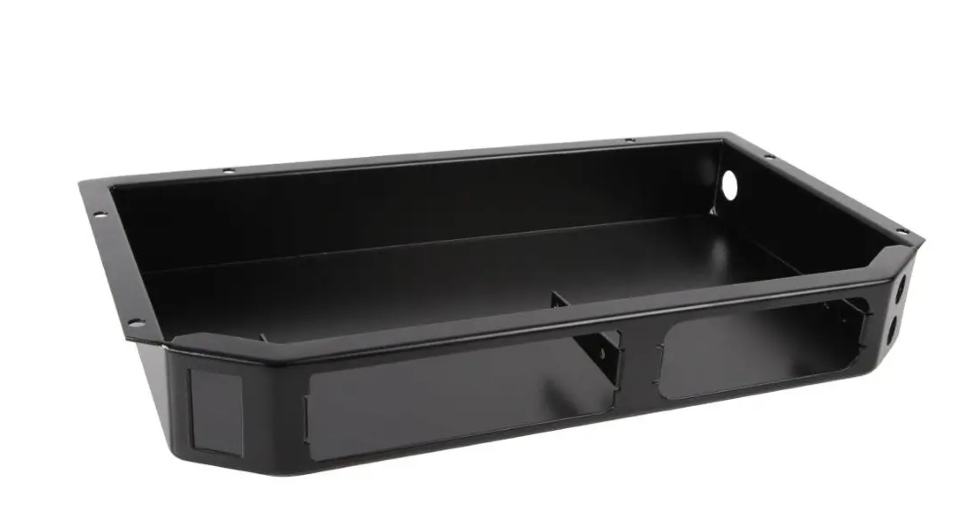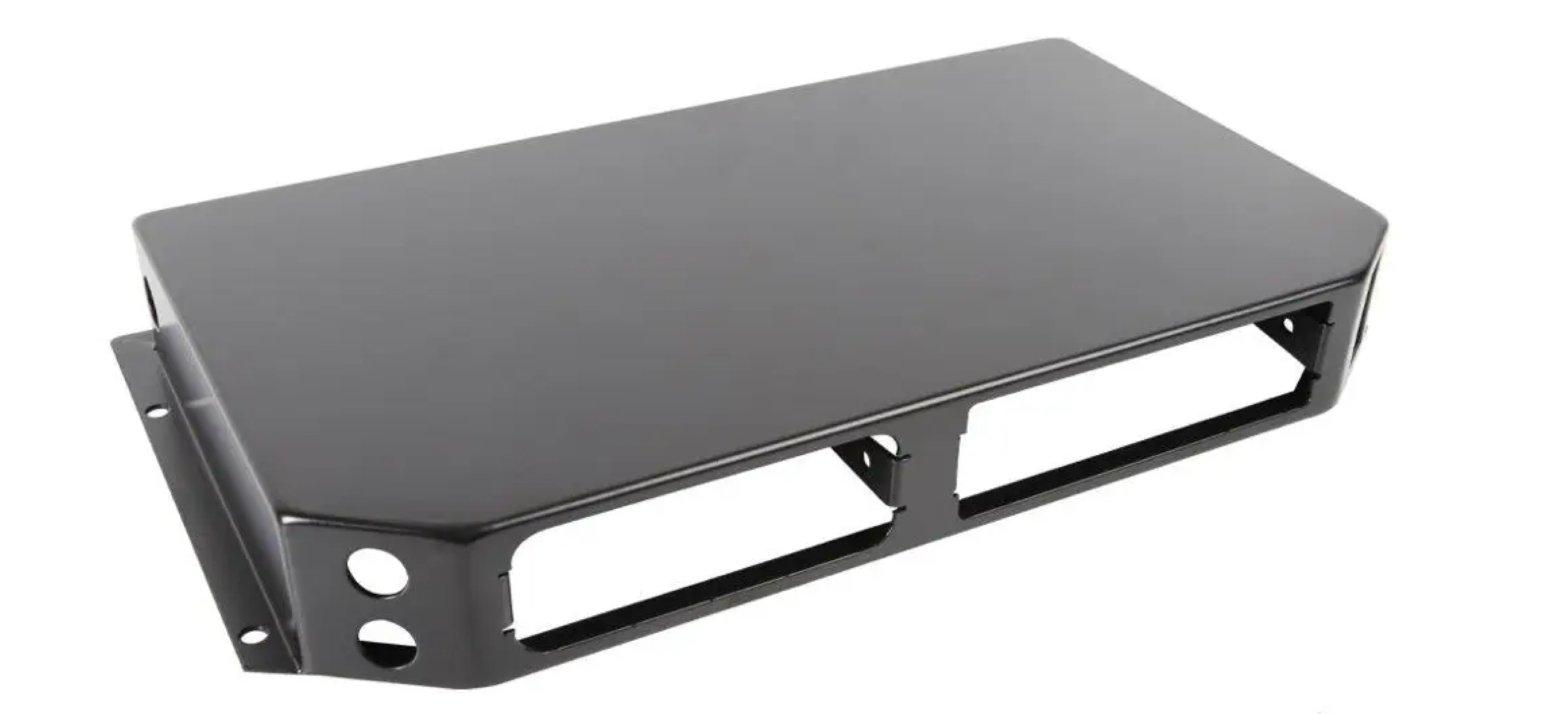 The roof mount was designed around Rugged radios but may work with other brands with threaded mount holes on the sides of the unit. Elevating the electronics in the vehicle also makes damage from water intrusion less likely. Mounting holes are also available for accessory plugs, switches and buttons. There are holes on both sides of the box near the back for routing electrical wiring.