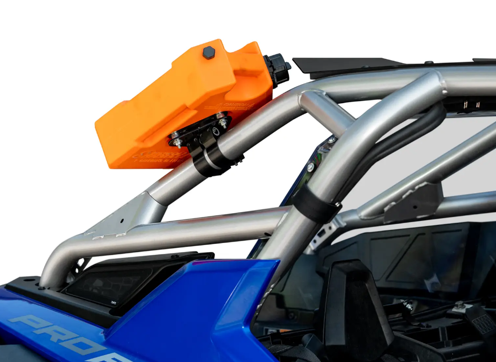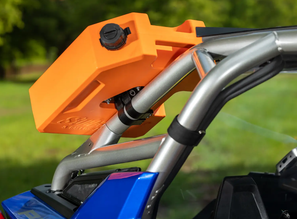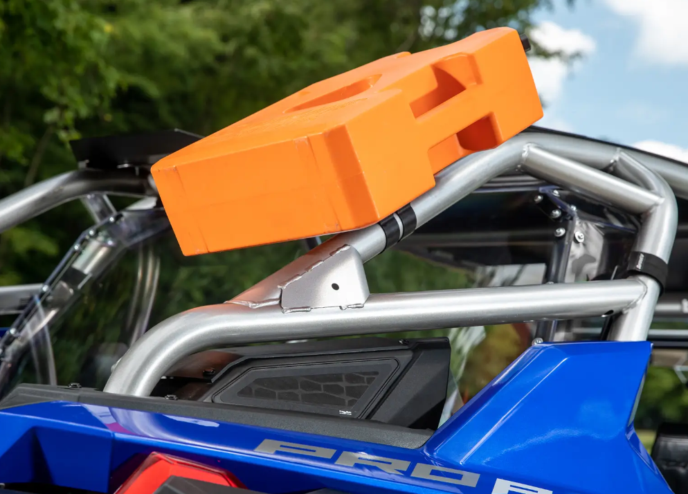 Your UTV’s all loaded up and ready for a long weekend on the trail, but you have no idea where you’re going to fit the jerry can. Instead of reloading your entire rig to squeeze it in, use SuperATV’s Universal Jerry Can Cage Mount. It attaches directly to your cage to get your jerry can out of the way and free up limited bed space.