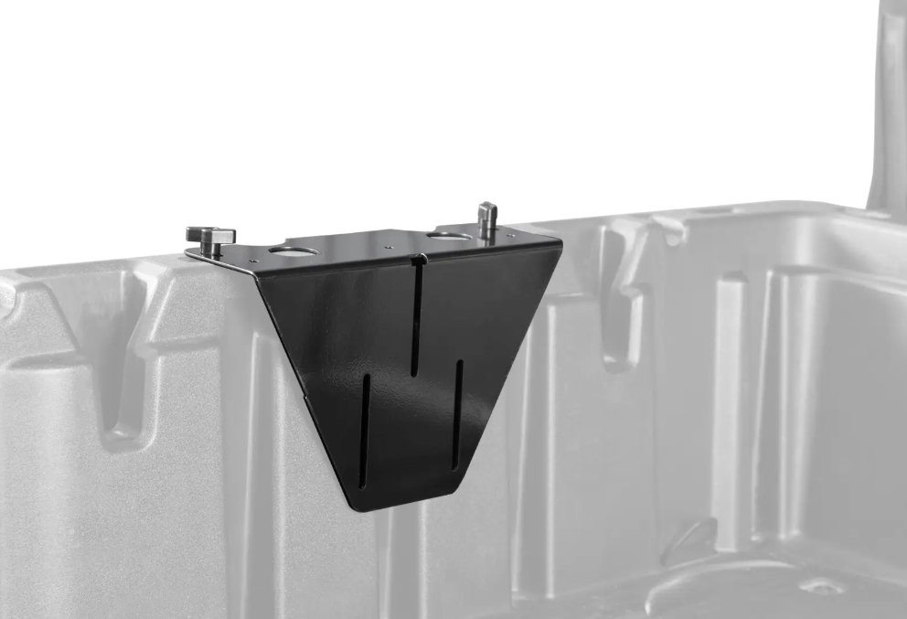 The whole point of a specialized mount is to keep jerry cans more secure than a bungie cord could. That’s why we use robust 1/8” steel plating that’s finished with a UV-resistant powder coating and secures directly to your Defender’s bed box. The slotted mount design ensures that the bottom of the UTV jug will sit flat on the bed for added support—you won’t be able to jostle them on this mount loose.