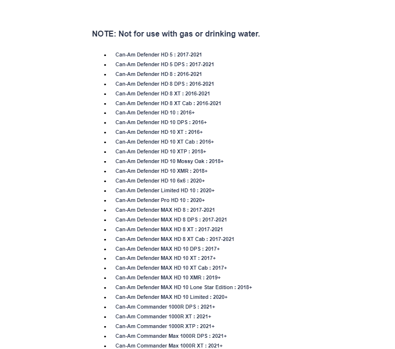 - Can-Am Defender HD 8 XT Cab : 2016-2021