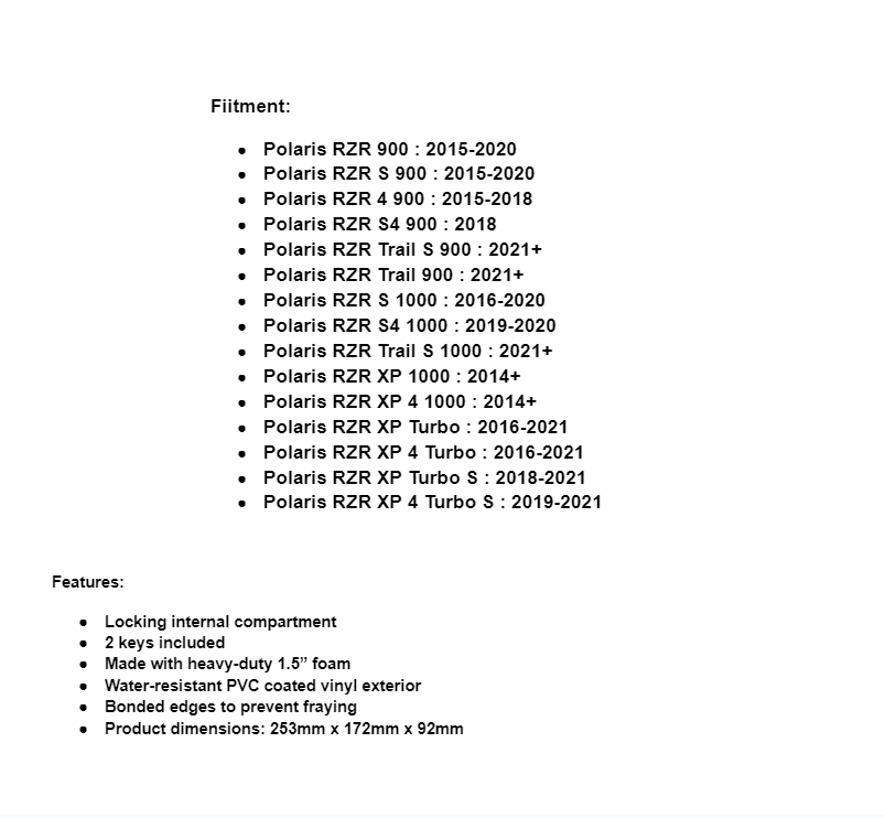 Your RZR is, overall, a pretty comfortable ride. It is missing one thing that would make a big difference though—an armrest. SuperATV’s Polaris RZR Armrest Gun Safe works overtime to make your ride more comfortable and keep your valuables safe. It’s a super cushy armrest with a lockable internal box that’s built to fit cargo as large as a full-sized Glock. You can use it to store pretty much anything you don’t want to lose or get soaked, from cell phones to car keys and wallets. Plus, it’s simple to install with our included instructions.