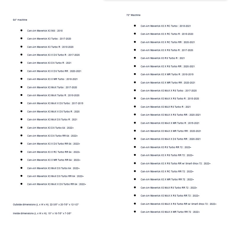 - Can-Am Maverick X3 X RC Turbo R : 2018-2020