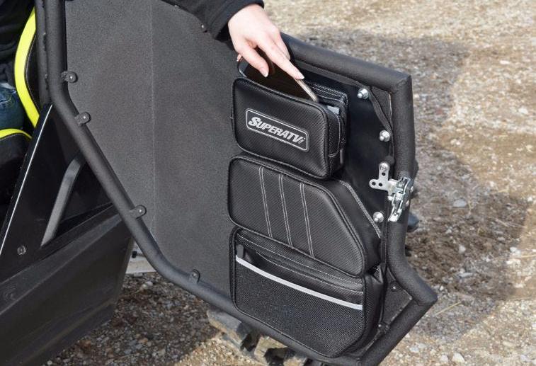 Ever worry about your cell phone or keys when you’re riding? Never deal with that headache again with these custom fit door bags from SuperATV! With a dedicated pocket for your cell phone and constructed of a thick durable PVS coated water resistant material, these bags will take care of you for years! Each bag is custom designed to fit your make and model, providing you with a rattle free design that securely fastens to the doors.