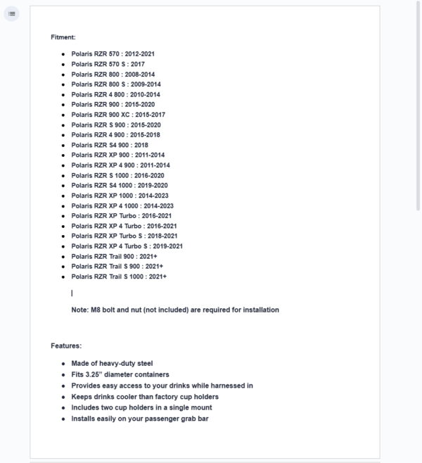 The cup holder situation on your Polaris RZR is bad. You get two spots that are almost impossible to reach when you’re harnessed in. Upgrade to SuperATV’s Polaris RZR Grab Bar Cup Holder to get two extra cup holders that are easier to reach and stay cooler than factory cup holders.