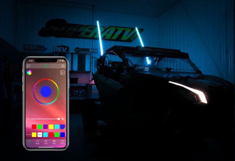 Get a pair of SuperATV’s Five-Foot RGB LED Whip Lights and ride your UTV in style. Light up the night with millions of colors and 300 pulse patterns that make you stand out. The wrapped LED strips mean they glow in every direction and along the entire length of the whip. It’s bright, visible, and good-looking.