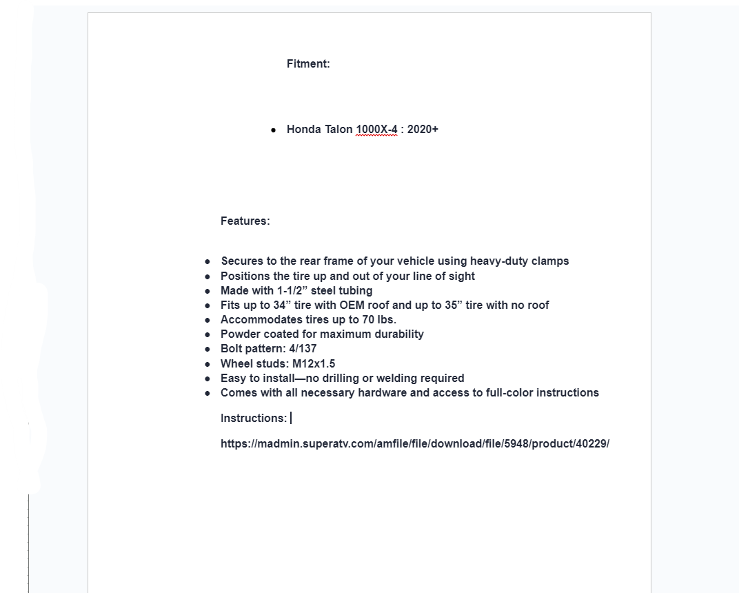 A spare tire carrier is something you’ll want to keep on your machine forever, which is why we made sure this one is built to last. It’s made out of 1-1/2” steel tubing and powder coated for maximum durability. Not only does this coating increase the strength of the steel, but it protects it from rust, too. And installation is a breeze—just mount it to your frame using our heavy-duty clamps and you’re good to go!
