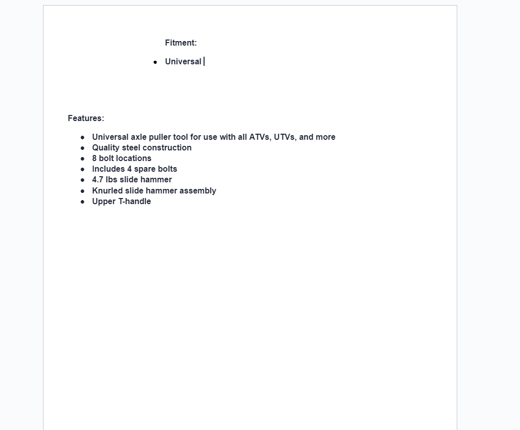 - Universal axle puller tool for use with all ATVs, UTVs, and more