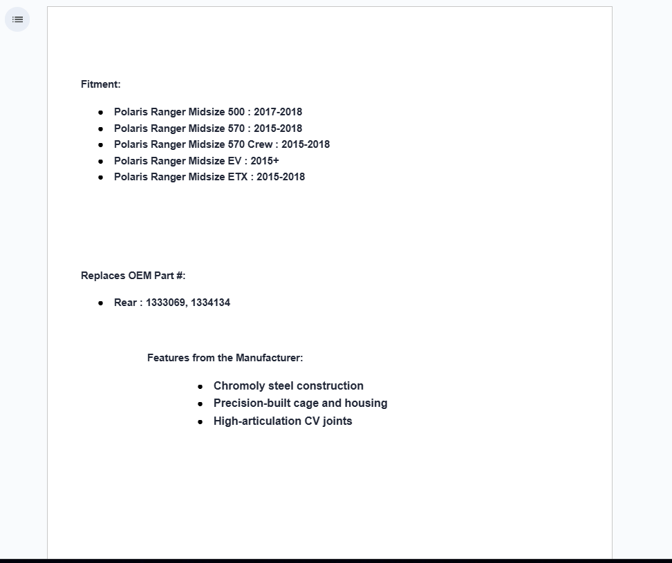 A broken axle sets you back big time. Get fixed up fast with SuperATV’s Polaris Ranger Midsize ADR Brand Axle. It gives you better durability and performance than OEM with a price you can’t beat.