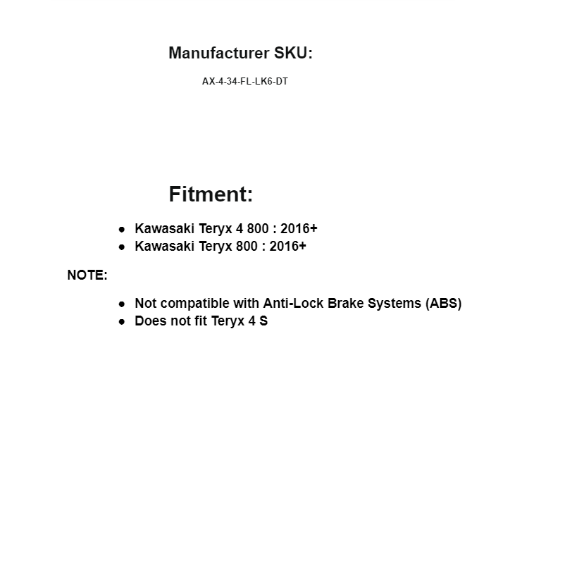 - Not compatible with Anti-Lock Brake Systems (ABS)