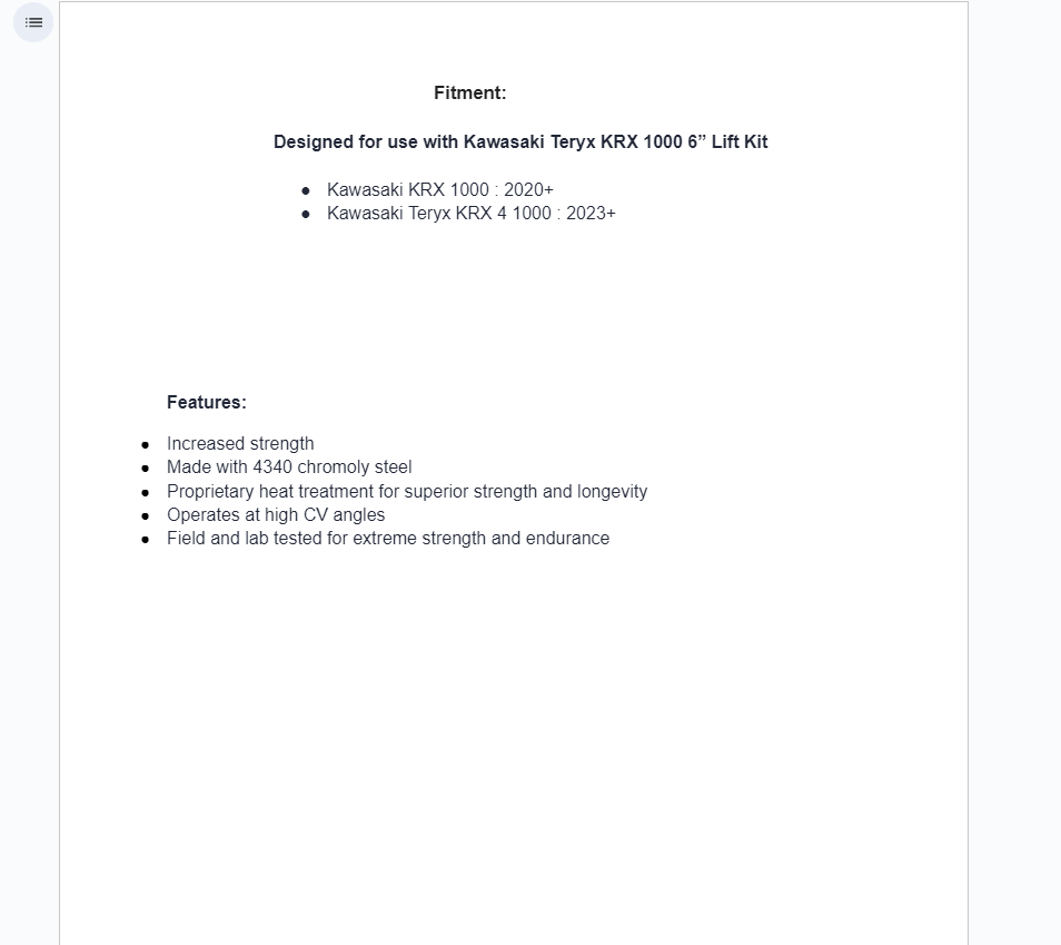 We work hard so you can ride hard. Because of our advanced CAD technology and endless lab and field testing, you can count on these Kawasaki KRX 1000 axles lasting a long time. When you buy Rhino 2.0s, you’re buying directly from the manufacturers—which is us. Our designers, engineers, and testers do it all to bring you this great product.