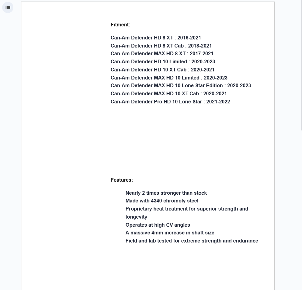 We’re riders just like you, and we know how vital axles are to the functionality of your ride. So we made it our mission to build the best Can-Am Defender HD8 axles possible. When you buy axles from us, you’re buying directly from the designers, engineers, testers, and manufacturers.