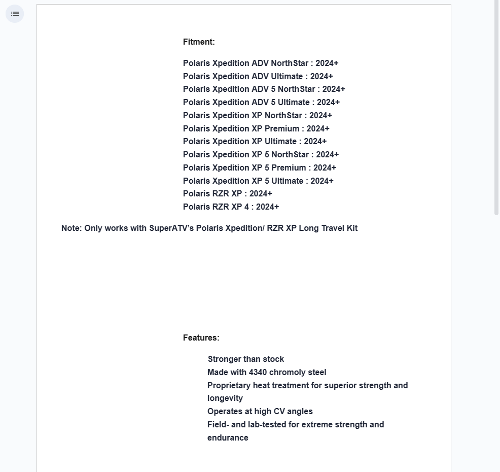 You like to ride rough and abuse hell out of your Polaris Xpedition. You need axles that can take a beating. SuperATV has you covered with our Rhino 2.0 Axles for the Polaris Xpedition Long Travel Kit. Hit the trails hard knowing you’re getting the best axles in the business.