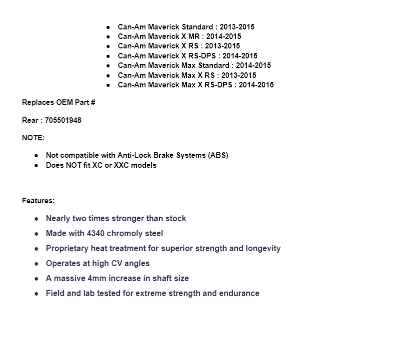 - Can-Am Maverick X RS : 2013-2015