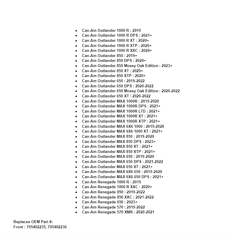 - Can-Am Outlander MAX 1000R : 2019-2020