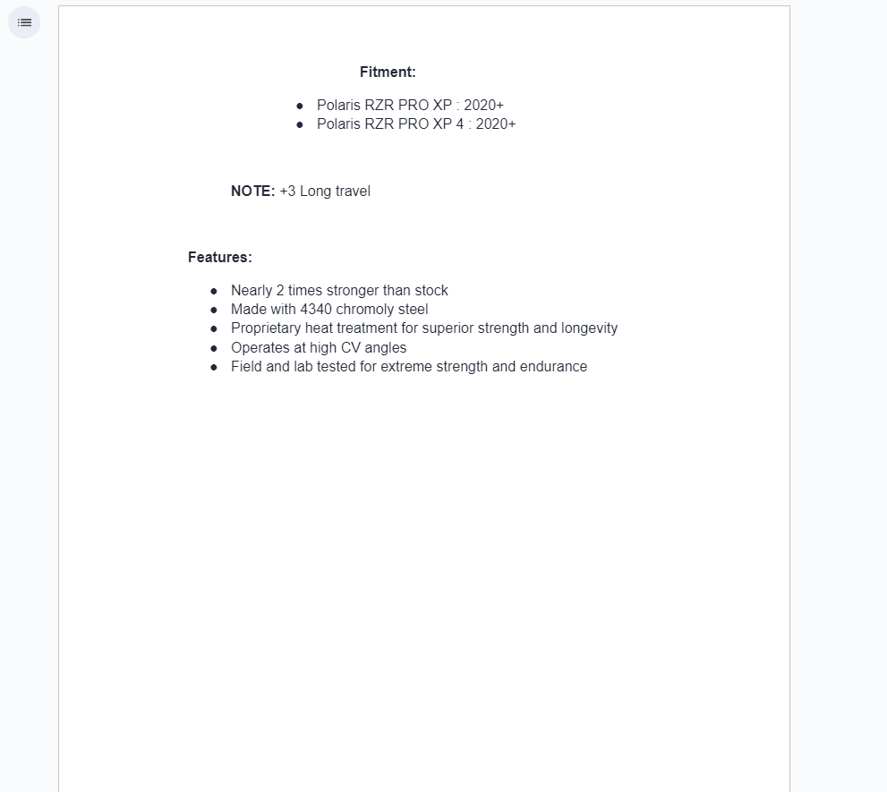 When you slap a 3” long travel kit on your Polaris RZR PRO XP, we know you’re into the full speed, full send lifestyle. That’s what SuperATV’s Rhino 2.0 Long Travel Axles are for. Their end-to-end chromoly construction paired with larger, more flexible CVs make them the durable, long-lasting axles you need.