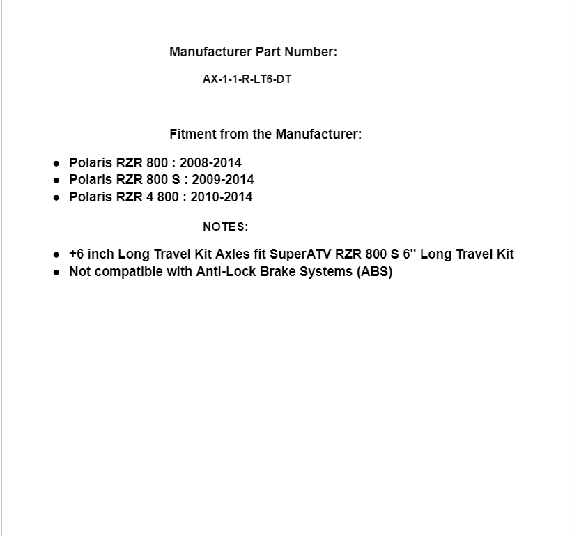 - +6 inch Long Travel Kit Axles fit SuperATV RZR 800 S 6″ Long Travel Kit