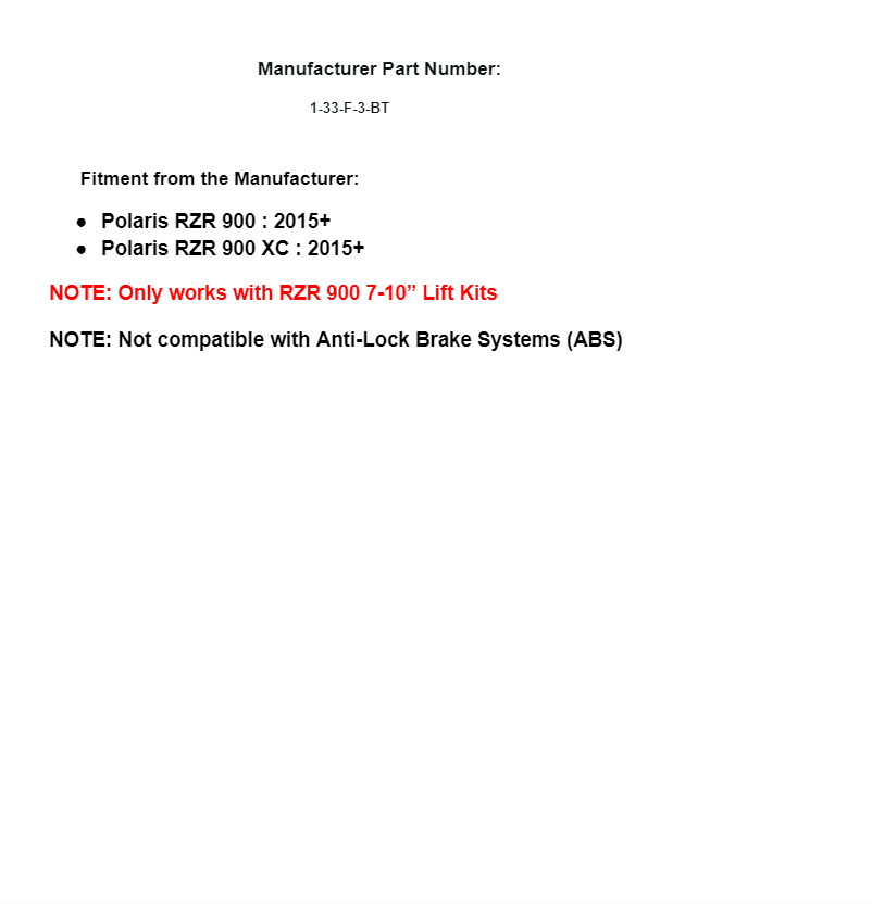 NOTE: Only works with RZR 900 7-10” Lift Kits