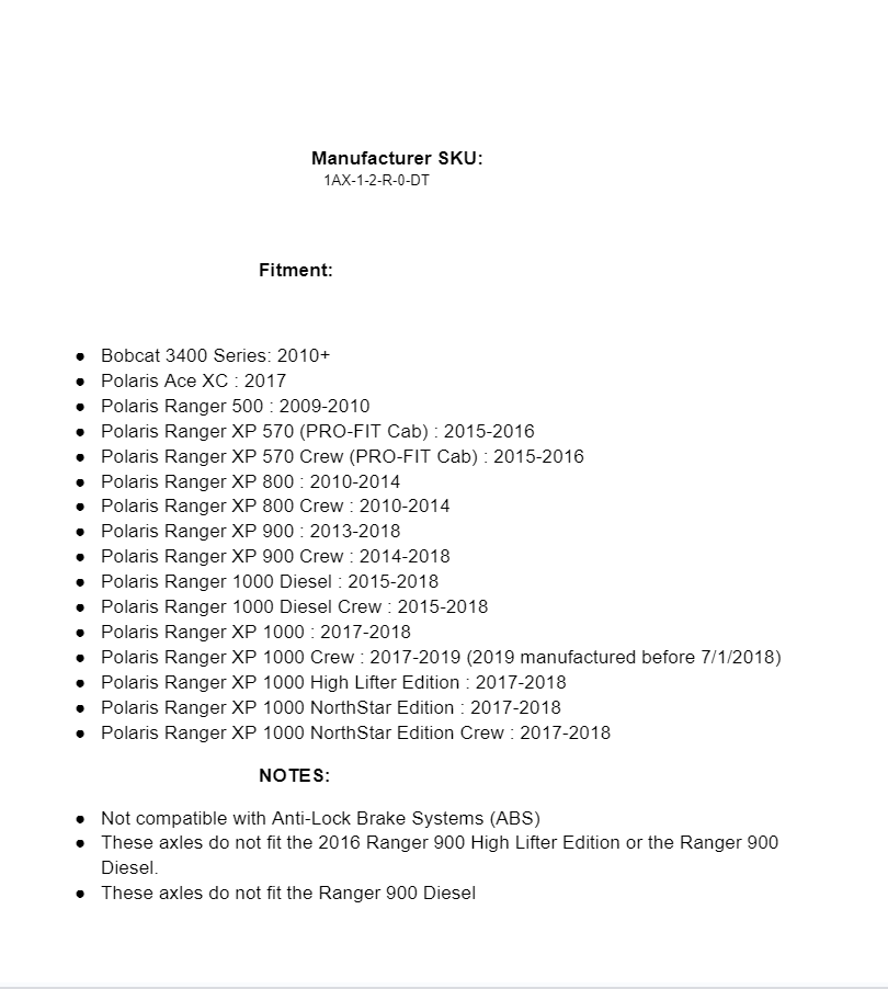 - These axles do not fit the 2016 Ranger 900 High Lifter Edition or the Ranger 900 Diesel.